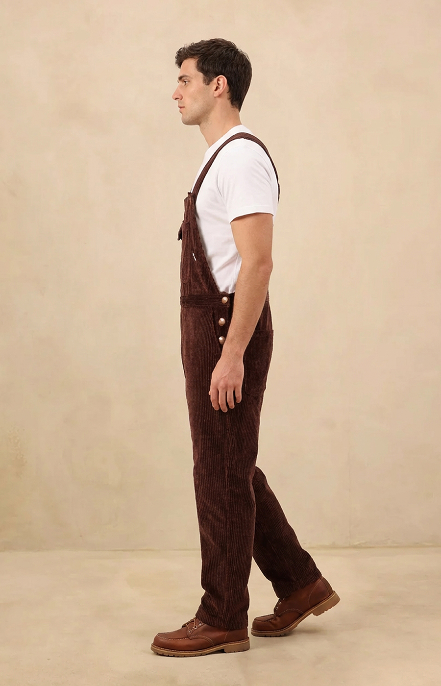 Crafted from a thick, high-quality corduroy blend (65% cotton, 35% polyester), this jumpsuit offers a comfortable yet structured feel suited for everyday wear. Its textured fabric and clean silhouette deliver a modern streetwear vibe with a confident edge, making it a standout piece for those who appreciate quality and effortless style.