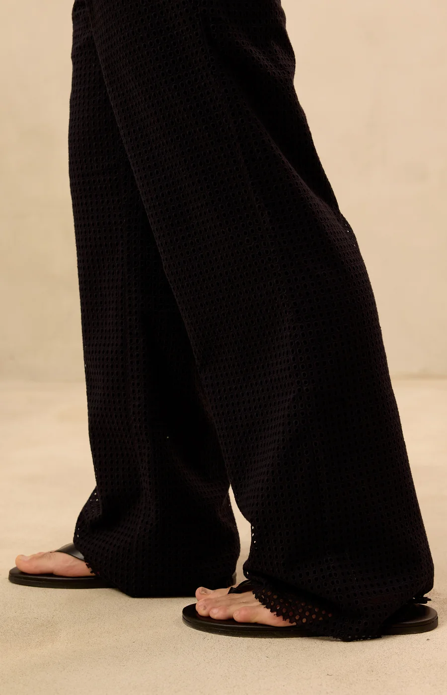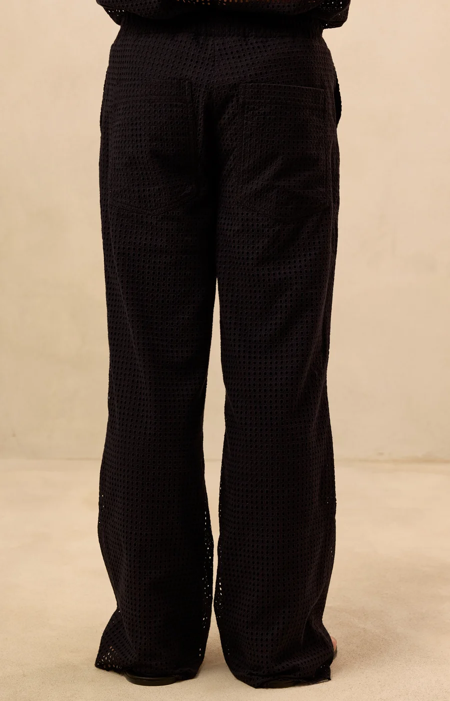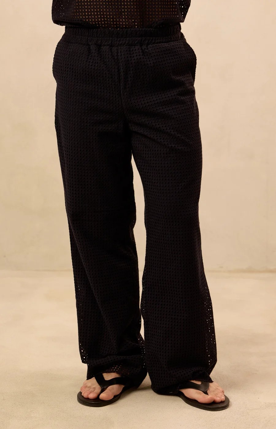 These Mesh Mode Pants are crafted from a lightweight and breathable blend of 65% cotton & 35% polyester, creating an airy mesh construction that feels effortless to wear. The semi-sheer design brings a bold layered look that stands out whether styled with the matching mesh top or worn as a statement piece on its own.